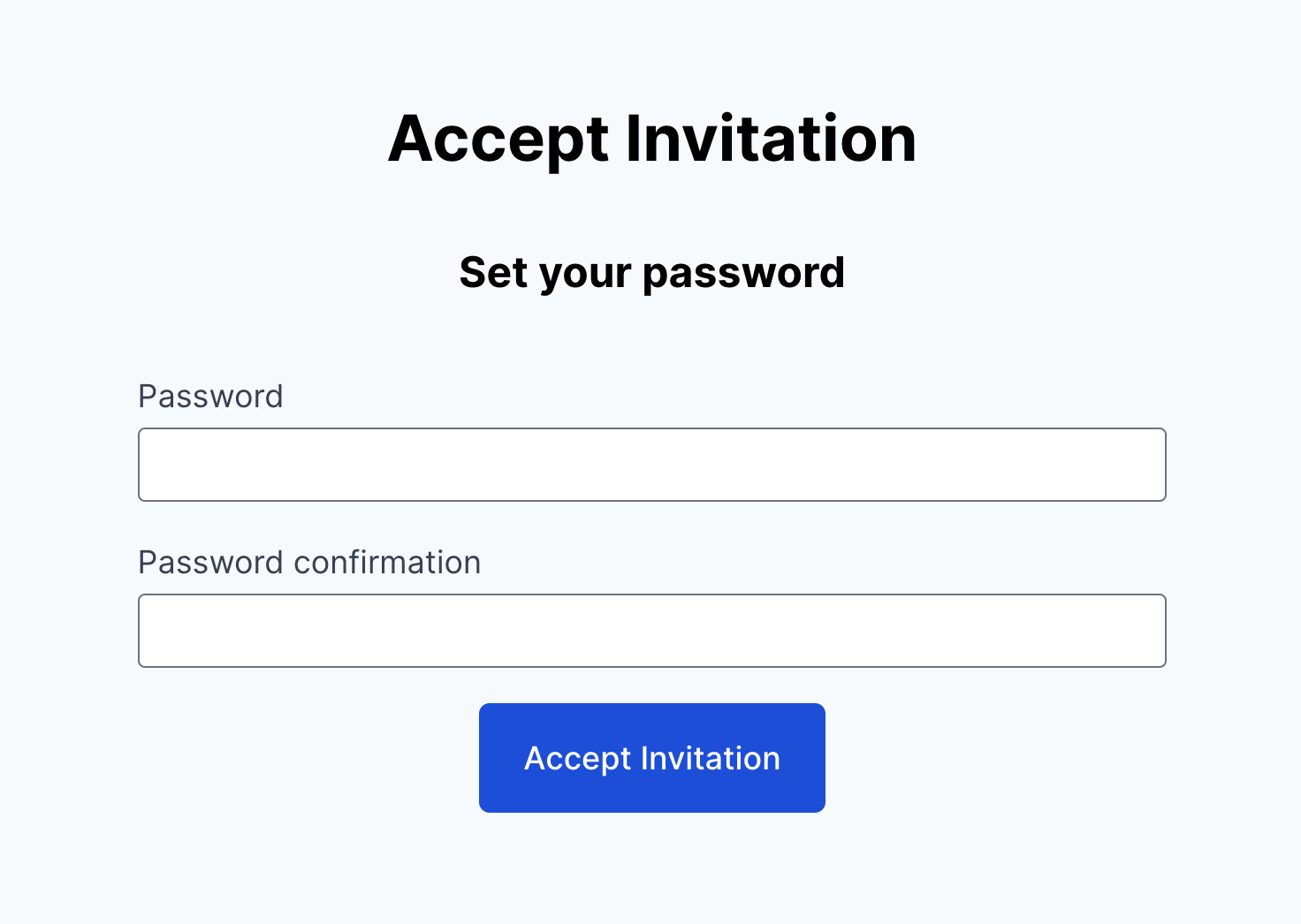 After setting your password, click "Accept Invitation" to complete the process.