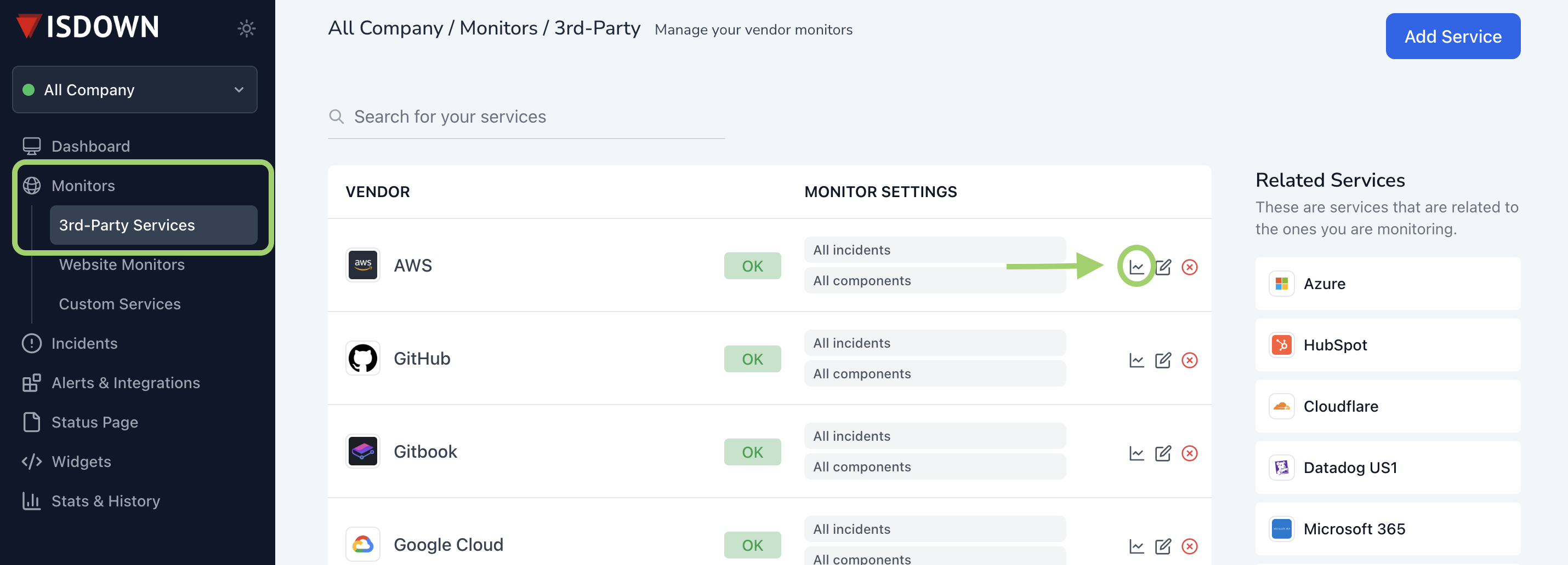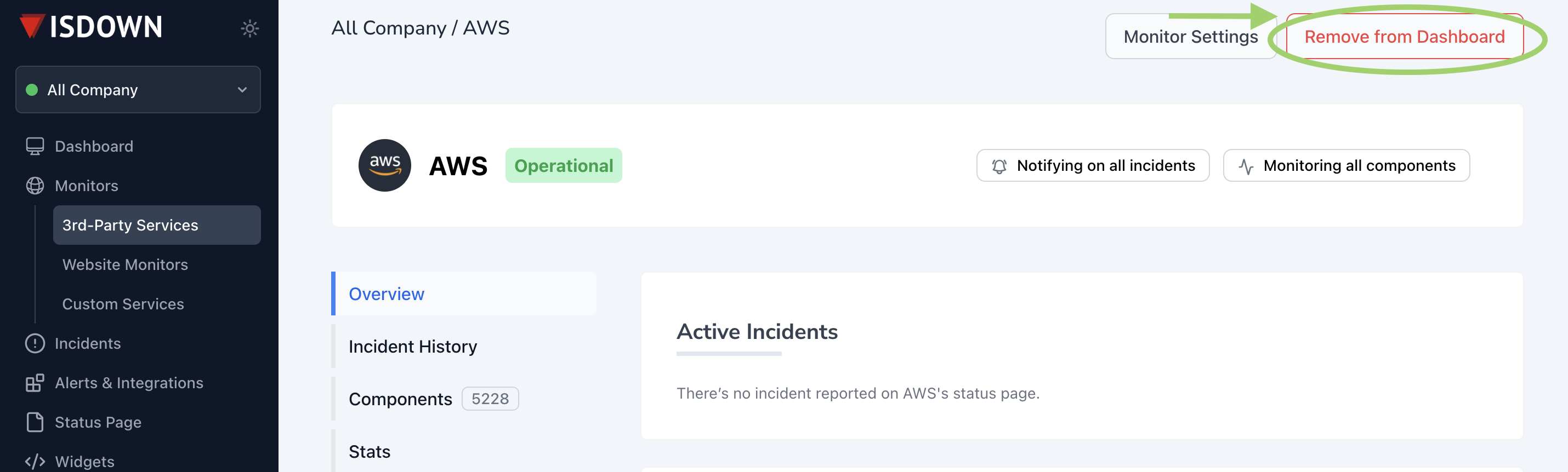 > You can always re-add it later by following the steps in [Start Monitoring a 3rd-Party Service.](https://help.isdown.app/cloud-monitoring/how-to-monitor-3rd-party-services)
