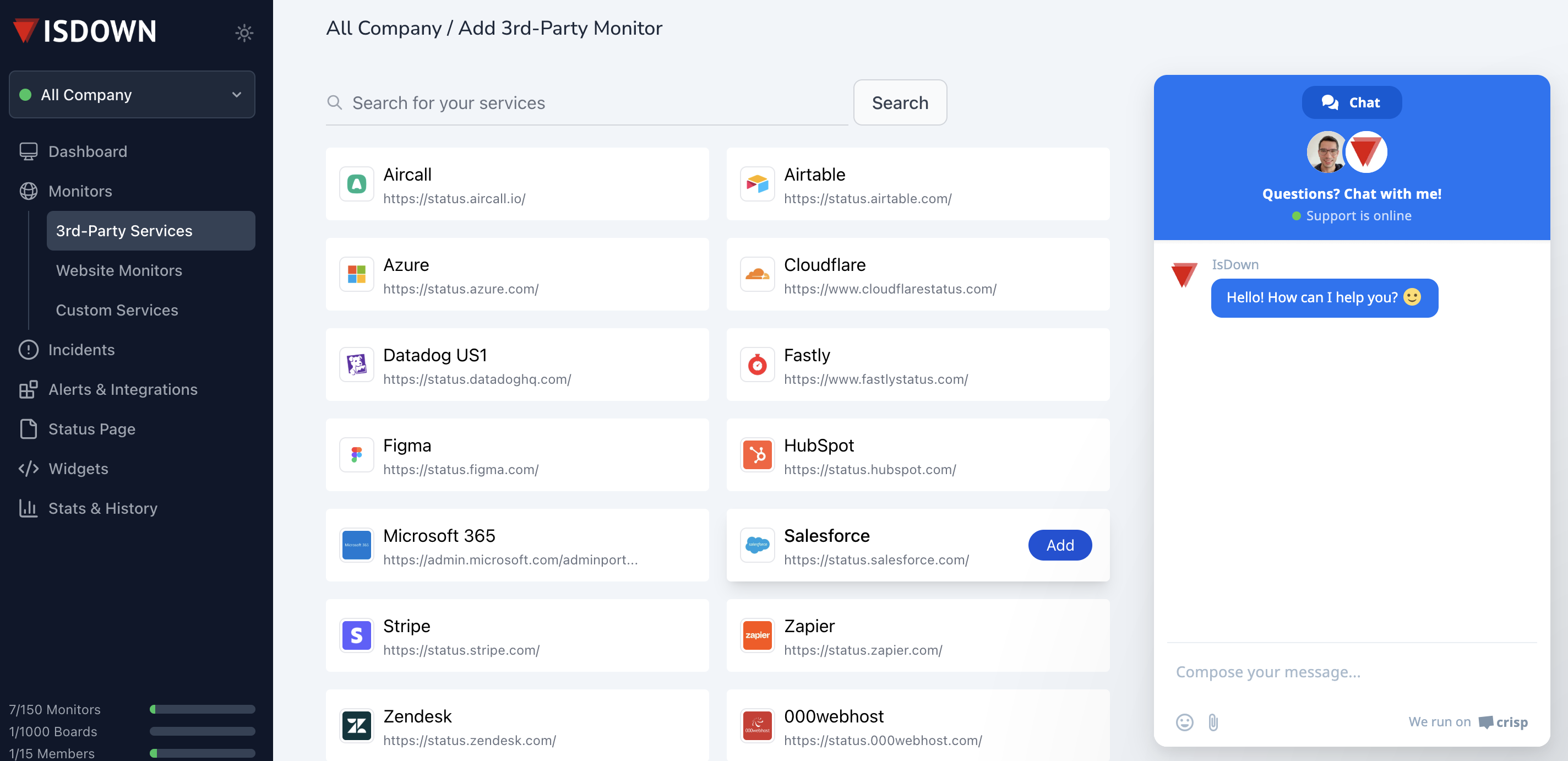 * [**How to Start Monitoring an External Service**](https://help.isdown.app/cloud-monitoring/start-monitoring-a-3rd-party-service)